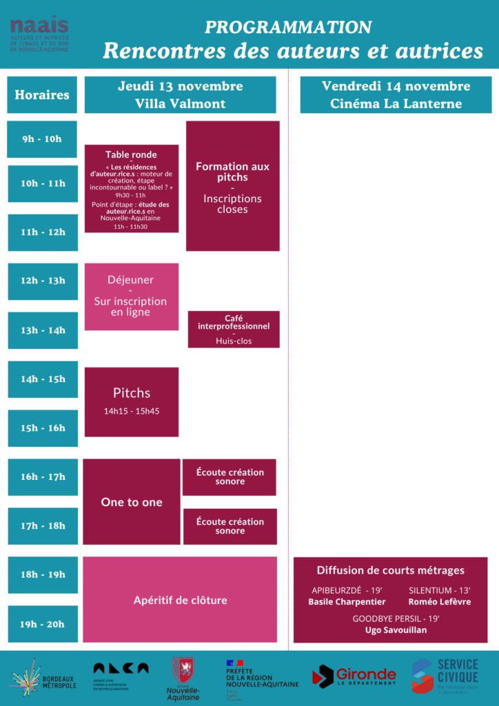 13h – 14h : Réunion du réseau interprofessionnel de la filière cinéma et audiovisuel en Nouvelle Aquitaine (huis clos) – Salle de L’Atelier