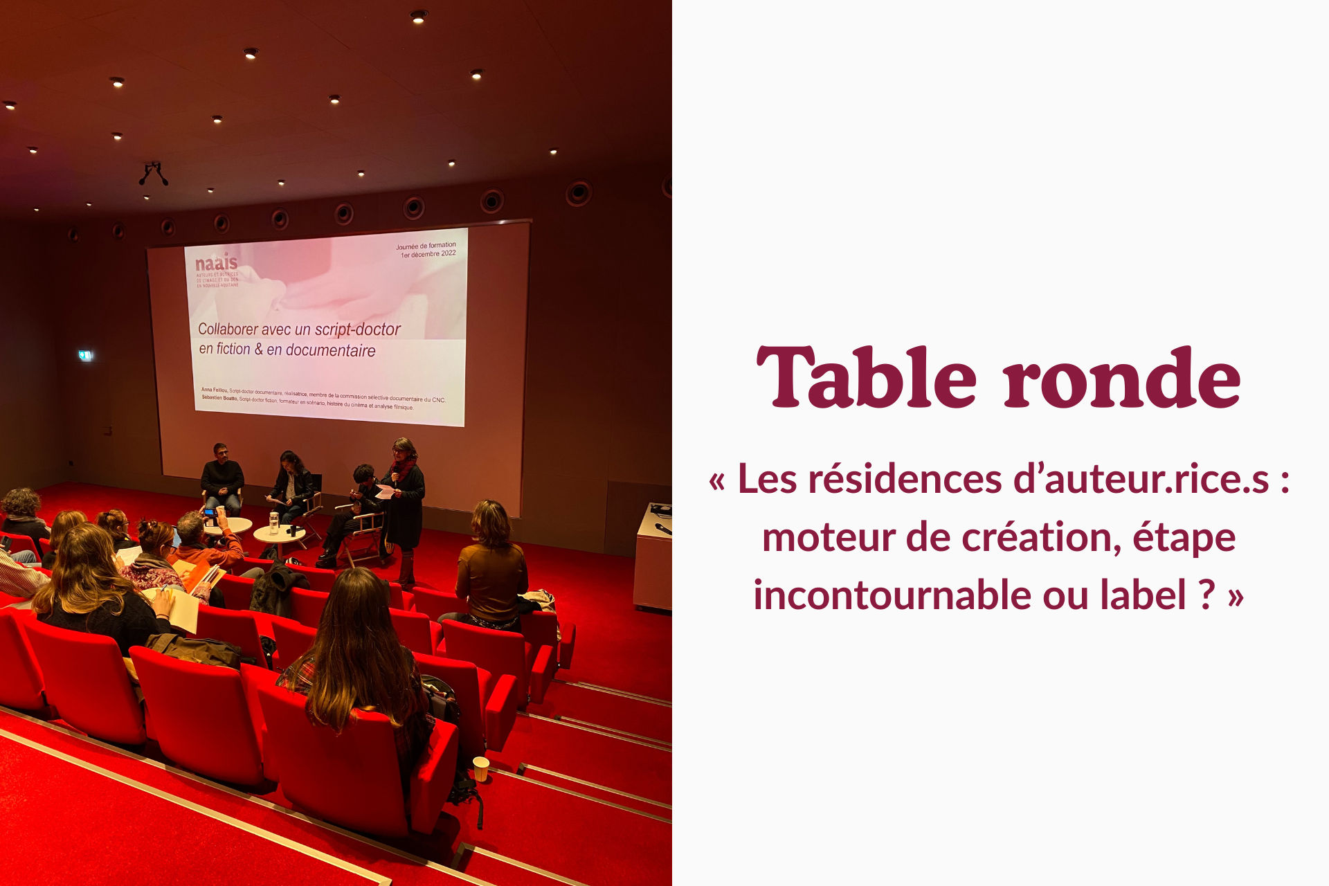 À partir de la présentation de l’étude sur les résidences d’écriture dans le secteur du cinéma et de l’audiovisuel réalisée par Raphaël Laforgue, NAAIS propose une discussion avec des auteur.rice.s et des représentantes de résidences de Nouvelle-Aquitaine pour réfléchir à l’impact de ces espaces dans le processus créatif.